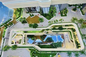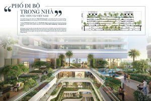Tiện ích nội khu của dự án đc thiết kế theo tiêu chuẩn 5sao chuẩn quốc tế với phố đi bộ trong nhà, cùng vườn treo trên không đầy cảm hứng nghệ thuật, đường chạy bộ trên không, phía trong dự án được thiết kế với 4 mảng xanh công viên lên đến 5.500m2.