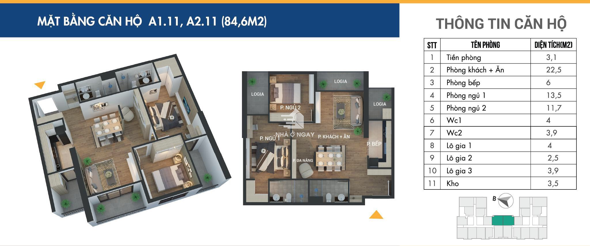 - Diện tích 84,6m2 , 2 n+1 , 2 vệ sinh