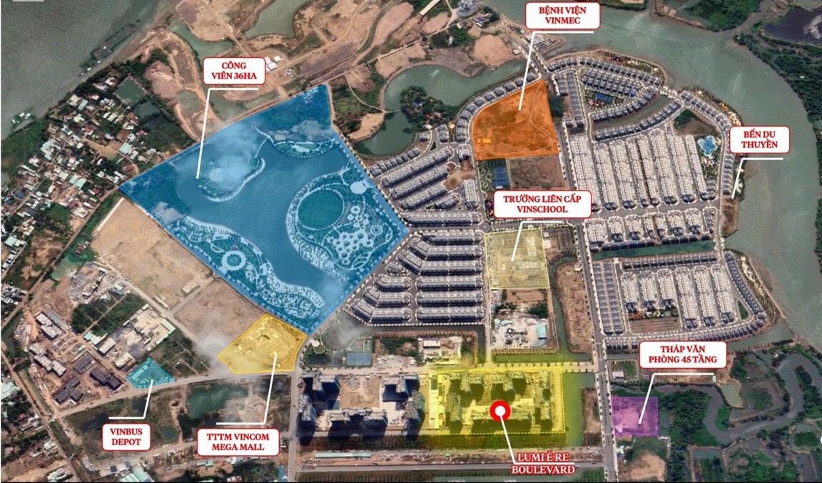 Tâm điểm của khu đô thị sầm uất, kết nối 1 phút đến Vincom lớn nhất miền Nam, bệnh viện VinMec, trường học Vinschool, tòa tháp văn phòng 45 tầng.